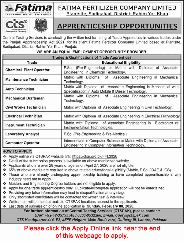 Fatima Fertilizer Company Apprenticeships 2026 CTS Apply Online